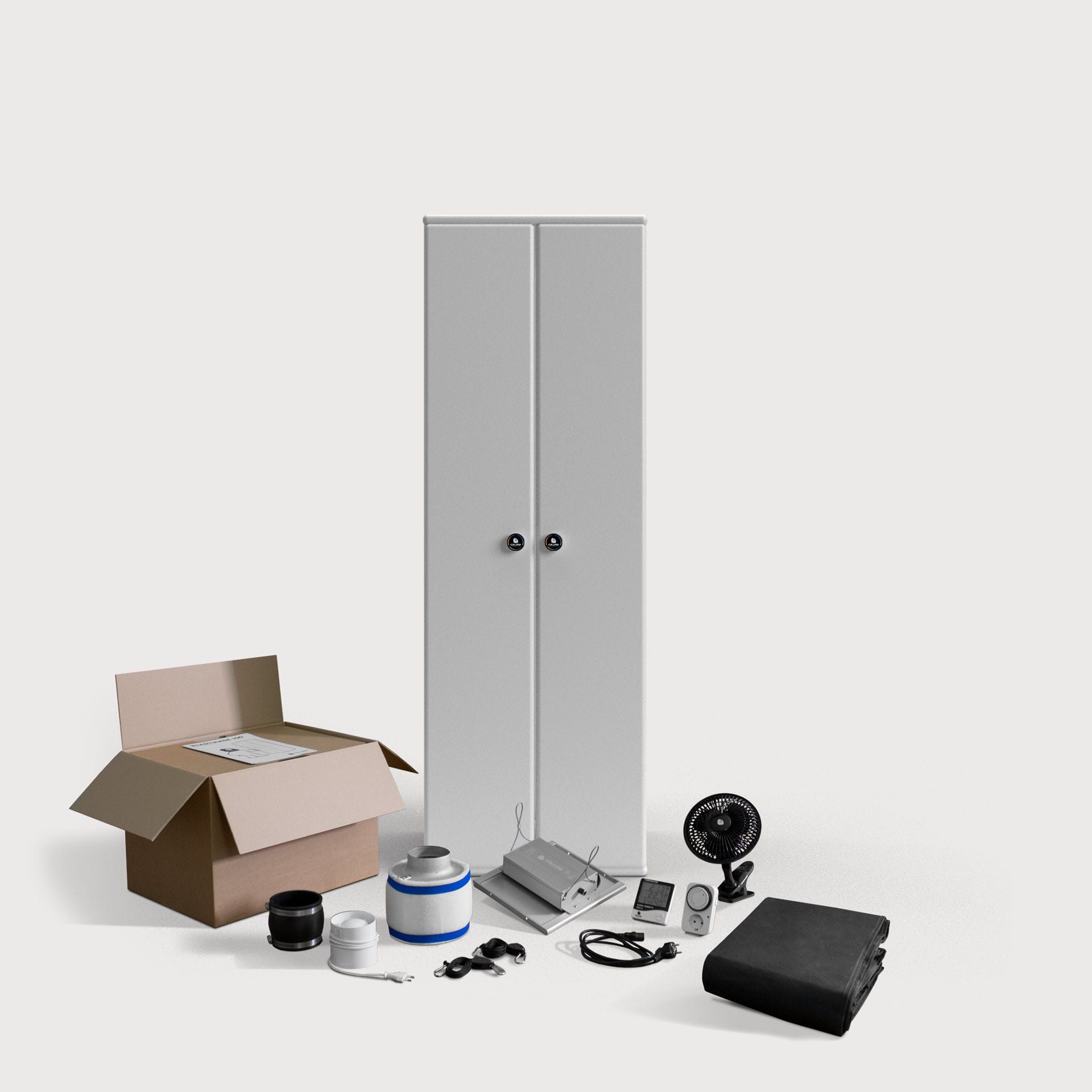 Das Readymade 100 Plug & Play Grow-Kit beinhaltet alles, was Du brauchst, um in wenigen Minuten mit dem Anbau zu beginnen. Dank seiner kompakten Maße passt es aufgebaut und betriebsbereit in einen IKEA Godishus Schrank (nicht Teil des Sets) und fügt sich so diskret in Dein Zuhause ein.