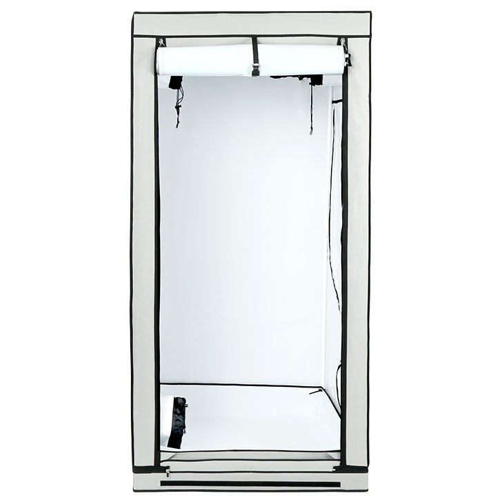 Die Hombox ist sehr einsteigerfreundlich und einfach aufzubauen. Das funktioniert u.a. durch die robuste Qualität, sie ist abwaschbar und langlebig. Das licht- und luftdichte Design kommt dem Ganzjahresgärtner entgegen und ist individuell ausstattbar. Als Materialien kommen schwarzer Webstoff, Metallrohre und Kunststoffwinkel zum Einsatz, es wird alles gesteckt, Schrauben oder Verkleben ist nicht notwendig. Lufteinlässe, Kabelführung und Absaugstutzen sind schon vorhanden, am Oberrahmen kann man Luftfilter oder Lüfter befestigen.